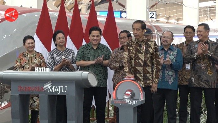 INVENTIF: Presiden Joko Widodo (Jokowi) meresmikan Kereta Cepat Jakarta-Bandung (KCJB) WHOOSH di Stasiun Halim, Jakarta Timur pada hari ini, Senin 2 Oktober 2023.