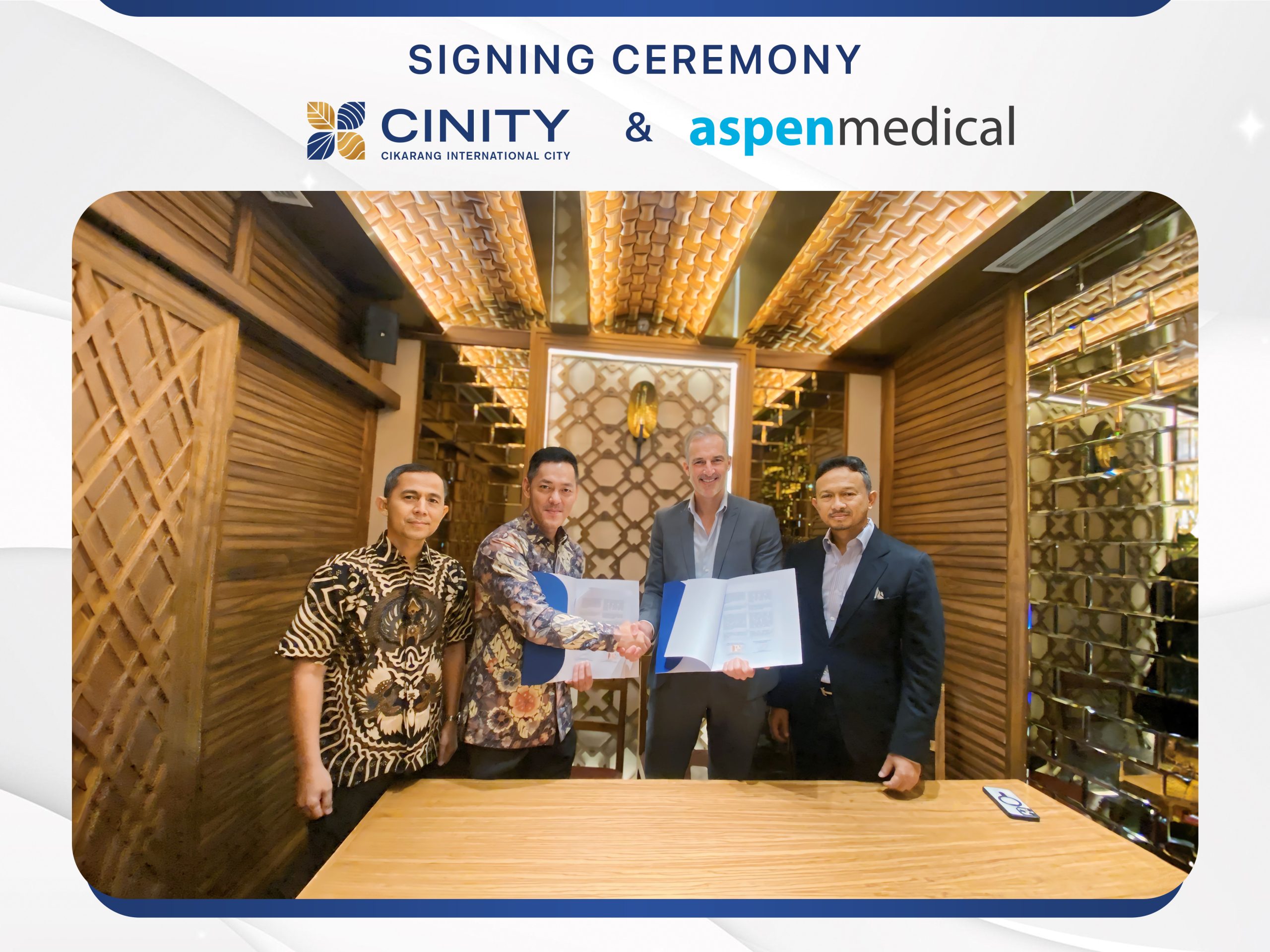 “Rencana kami untuk membangun Rumah Sakit Aspen Medical di CINITY menandai ekspansi dari ekosistem rumah sakit untuk mewudujukam rencananya dalam membangun lebih dari 20 rumah sakit dan ratusan klinik di seluruh provinsi Jawa Barat untuk mecakup pusat pelatihan keperawatan dan medis berbasis komunitas,” jelas CEO Aspen Medical Indonesia, dr. Andrew Rochford.