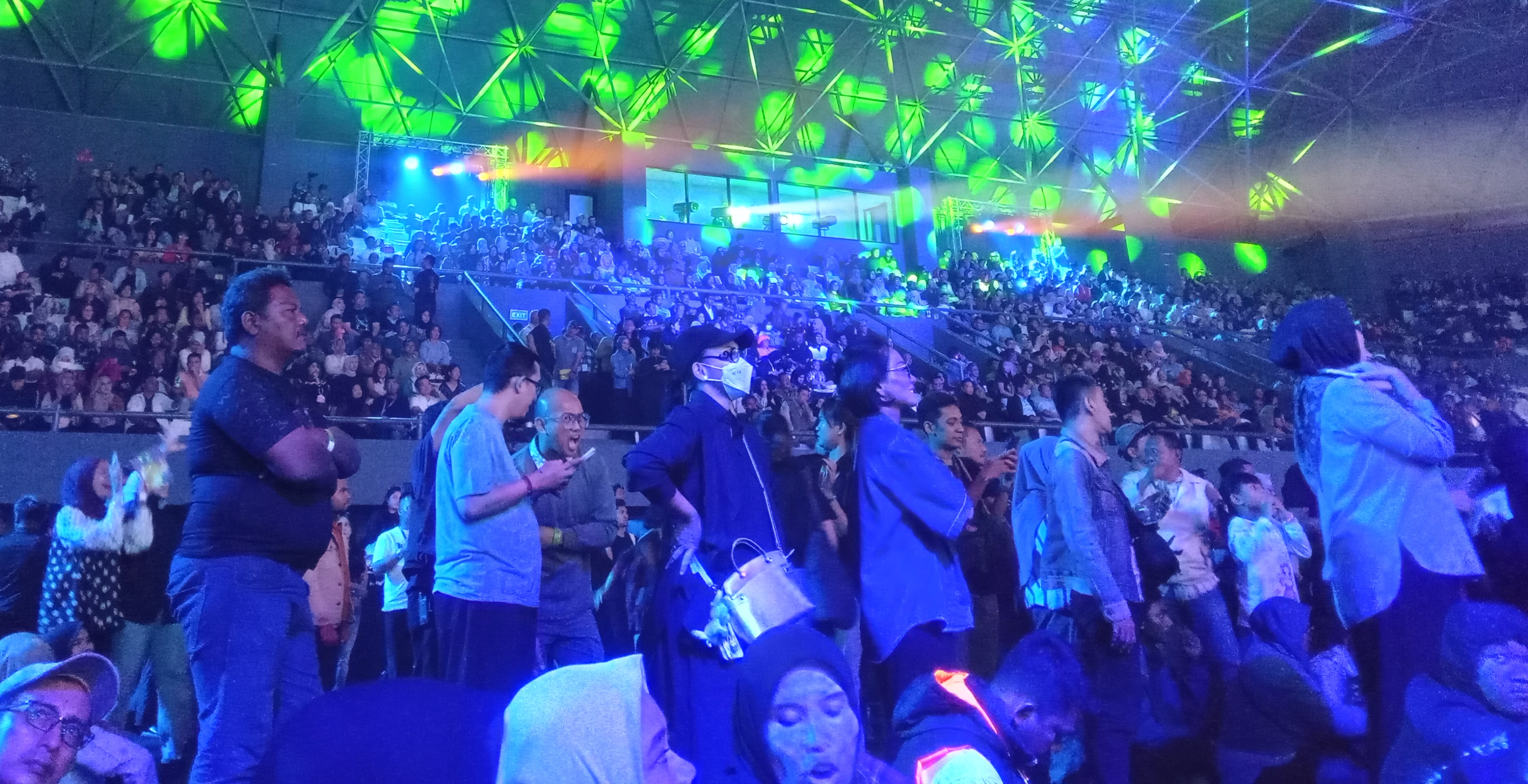 Langit Jakarta gelap-gelap terang dari semprotan mercury. Lalu sorot lampu Tenis Indoor GBK mulai berpendar, memantul di wajah-wajah yang tak hanya datang untuk menonton, melainkan untuk mengenang dan tentu saja berdendang.